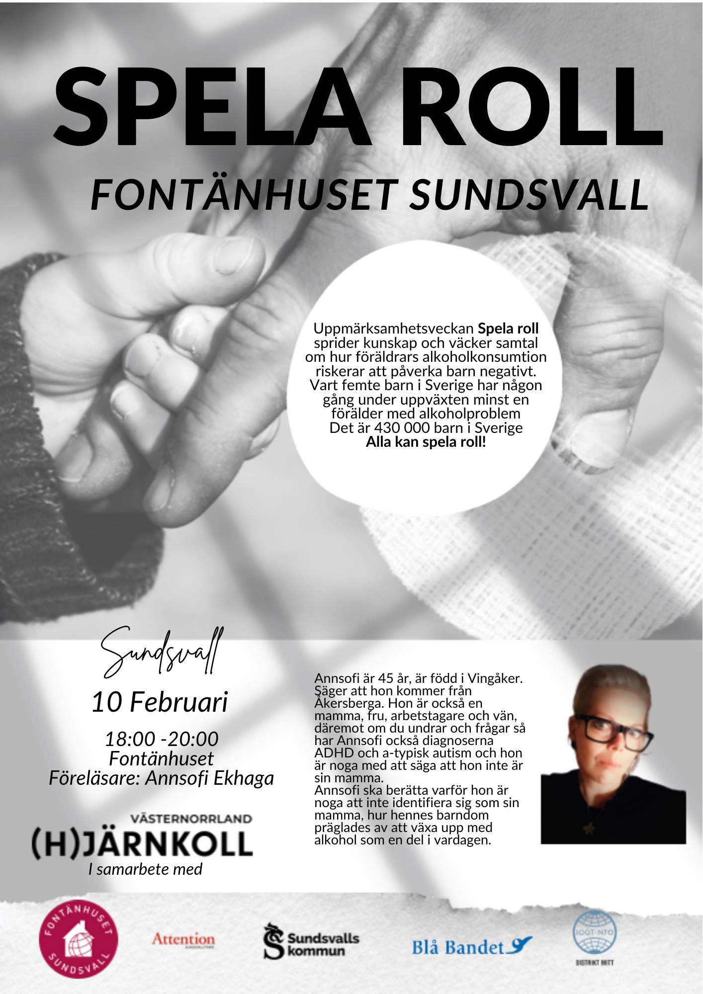 Fontänhuset Sundsvall är stolta över att vara värdar för en öppen föreläsning inom uppmärksamhetsveckan Spela roll.